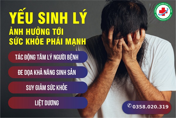 Ảnh hưởng đến sức khỏe: Khi bị bệnh yếu sinh lý nam giới thường kéo theo mắc các bệnh như yếu thận, cao huyết áp, tim mạch…98% quý ông không thể hoàn thành cuộc yêu do yếu sinh lý bởi tình trạng suy giảm ham muốn tình dục, rối loạn cương dương, rối loạn xuất tinh,…