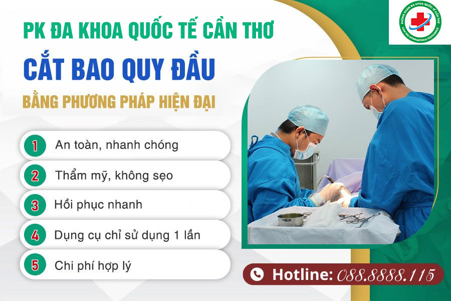 Hiện Phòng khám Đa khoa Quốc tế Cần Thơ đang có ưu đãi khám cắt bao quy đầu chỉ từ 990K và giảm ngay 30% chi phí thủ thuật cho đối tượng đăng ký trước qua đường dây nóng 088.8888.115 hoặc [ĐĂNG KÝ NGAY] tại đây.