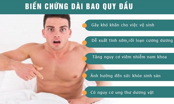 Bao quy đầu dài, đôi khi dính chặt lấy đầu dương vật khiến việc vệ sinh vùng kín của người bệnh cực kỳ khó khăn. Khi đó, người đàn ông dễ mắc các bệnh do vi khuẩn, nấm, virus tấn công gây ra viêm nhiễm nam khoa. Các nhân tố này sẽ ngược dòng cho các cơ quan xung quanh gây bệnh cho cả hệ sinh dục và hệ tiết niệu.