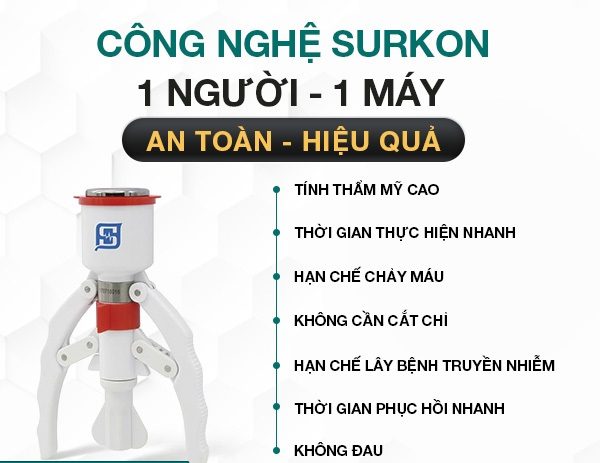 - Cắt bao quy đầu bằng máy Surkon