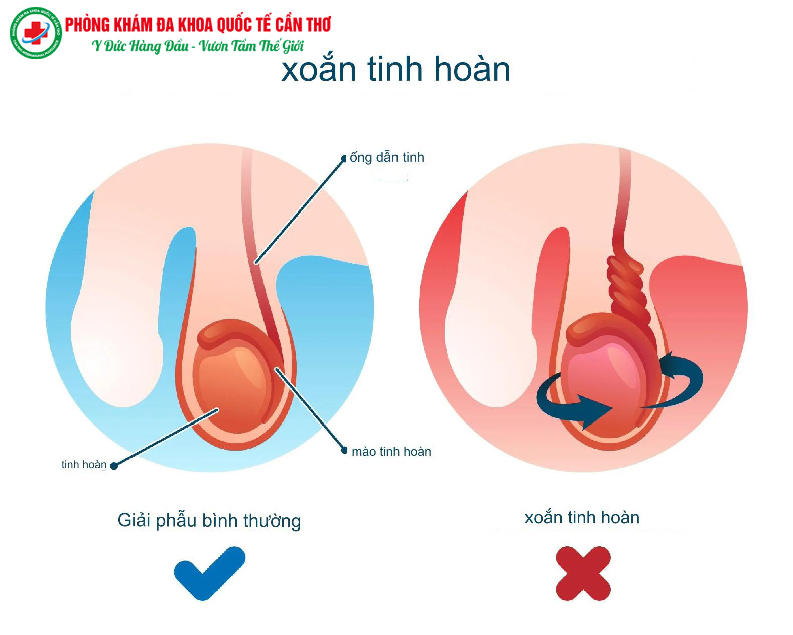 Đây được coi là một trường hợp khẩn cấp cần được can thiệp y tế ngay lập tức. Tình trạng này xảy ra khi thừng tinh bị xoắn trong tinh hoàn, cắt đứt nguồn cung cấp máu đến cơ quan. Trong vòng 6 giờ nếu người bệnh không được điều trị kịp thời sẽ có nguy cơ phải cắt bỏ tinh hoàn. Cụ thể, triệu chứng thường thấy là đau nhức đột ngột kèm sưng tấy.