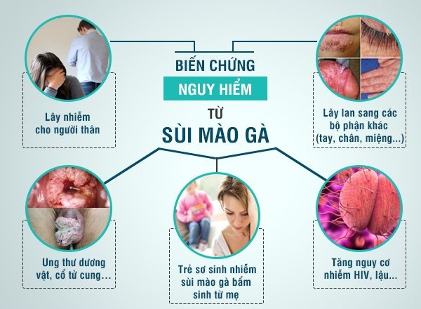 Sùi mào gà ở bộ phận sinh dục nam nữ không được hỗ trợ điều trị kịp thời sẽ làm gia tăng các bệnh lý nam khoa, phụ khoa.