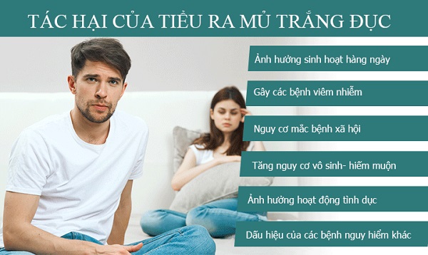 Tăng nguy cơ lây nhiễm bệnh xã hội: Đi tiểu ra mủ có thể cảnh báo bệnh nhân mắc các bệnh xã hội như bệnh lậu do đó sẽ có nguy cơ lây lan sang bạn tình.