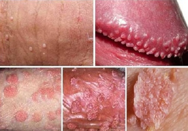 Sùi mào gà ( HPV)Tương tự như Herpes sinh dục, sùi mào cũng xuất hiện các mụn lạ li ti mọc quanh cơ quan sinh dục nam, ban đầu mụn có kích thước nhỏ, phân bố lẻ tẻ hoặc theo cụm, có màu hồng tươi. Sau một thời gian, nốt mụn lớn dần, vỡ loét khiến người bệnh đi lại khó khăn, chảy máu khi quan hệ tình dục. HPV được xem là tác nhân gây bệnh sùi mào gà, đồng thời nó cũng là loại vi rút ung thư dương vật ở nam giới. Hiện nay sùi mào gà là một bệnh xã hội khó chữa trị nhưng khả năng lây nhiễm rất cao.