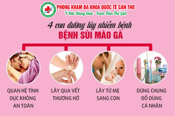 Ngoài ra bệnh sùi mào gà còn có thể lây qua đường ăn uống, các vật dụng cá nhân như: bồn tắm, quần lót, bồn tắm, bàn chải đánh răng.., đều chứa virus HPV gây bệnh. Vì vậy mọi người cần chú ý giữ gìn vệ sinh cá nhân sạch sẽ, không dùng chung đồ dùng và động chạm vào vết bị sùi mào gà.