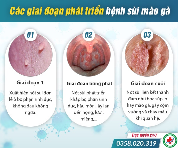 Các giai đoạn của sùi mào gà gồm: