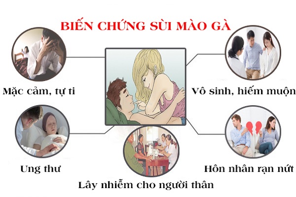 Biến chứng nặng nhất của sùi mào gà là ung thư cổ tử cung hoặc các loại ung thư vùng sinh dục khác như ung thư dương vật, ung thư hậu môn,… Bên cạnh đó, trong giai đoạn này, người bệnh có nguy cơ cao bị bội nhiễm với các bệnh lý về da và viêm loét chồng lấp.